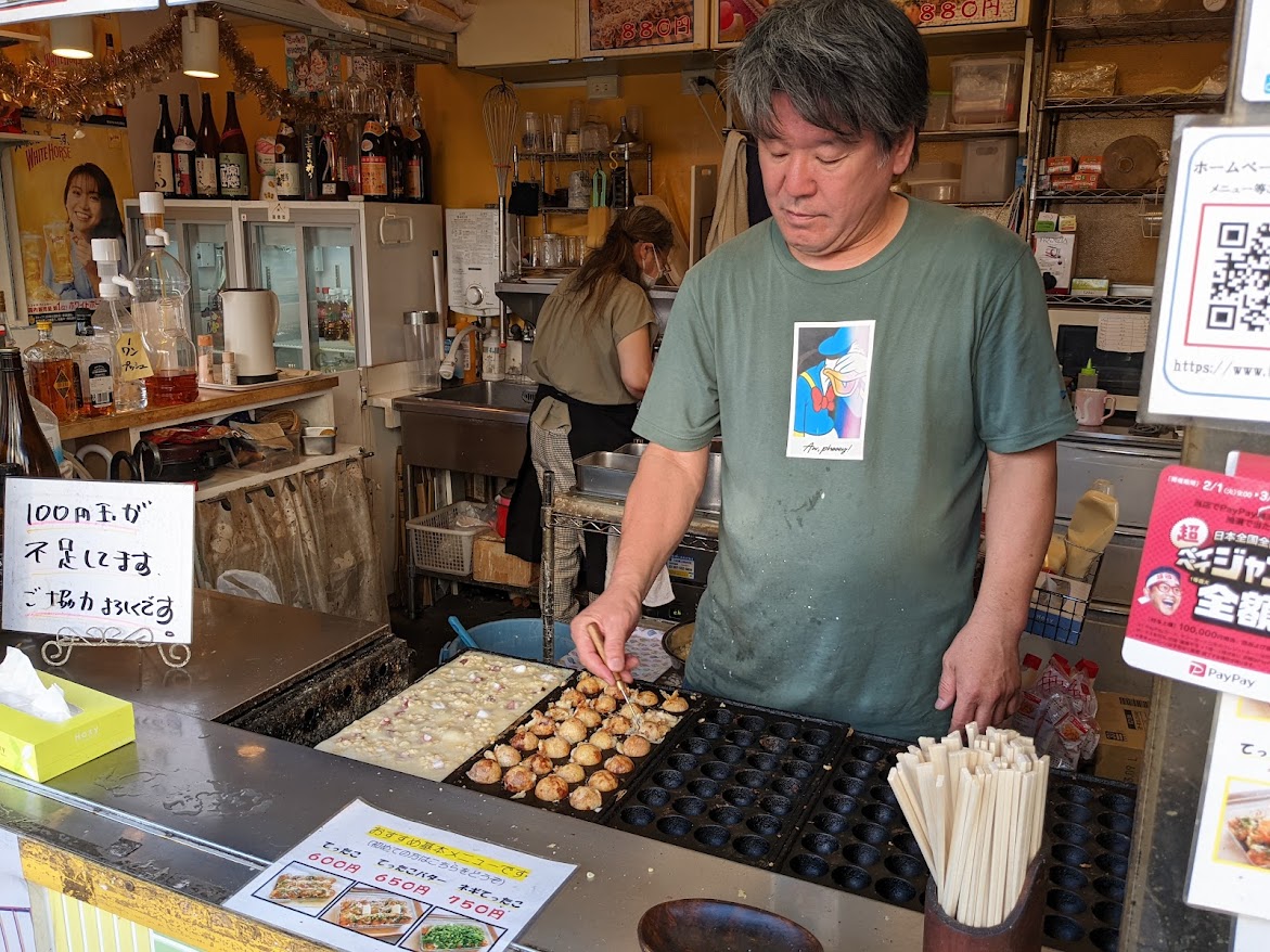主張先の知人に進められて訪れた店だが、歴史を感じる佇まいでいかにものこだわりを感じる。関西のソースのギトギトした感じも好きだが、ここのたこ焼きは醤油ベースであっさり食べることが出来るらしい。