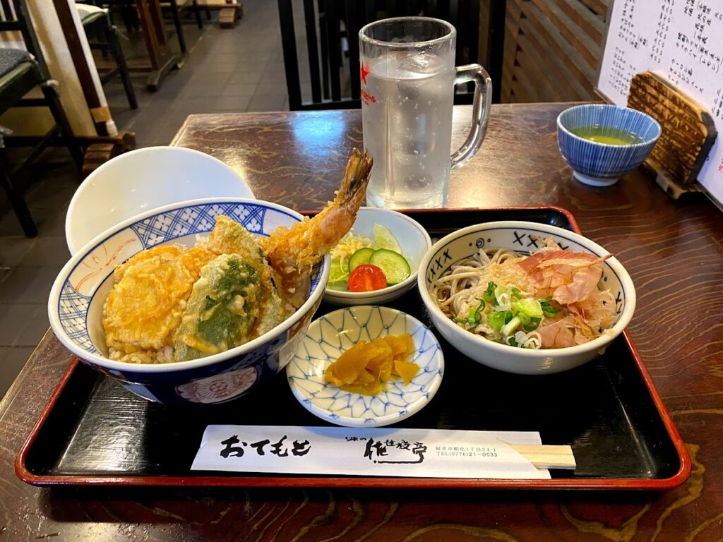 ダメダメそばに出くわしたことで、良かったソバを思い出した筆者。福井市の**佐桂枝亭(さかえてい)**さんの越前おろしそば。天丼セットで頼んでしまってソバがハーフだったのが残念ですが、クソみたいなわんこそばとは比較になりませんでした。