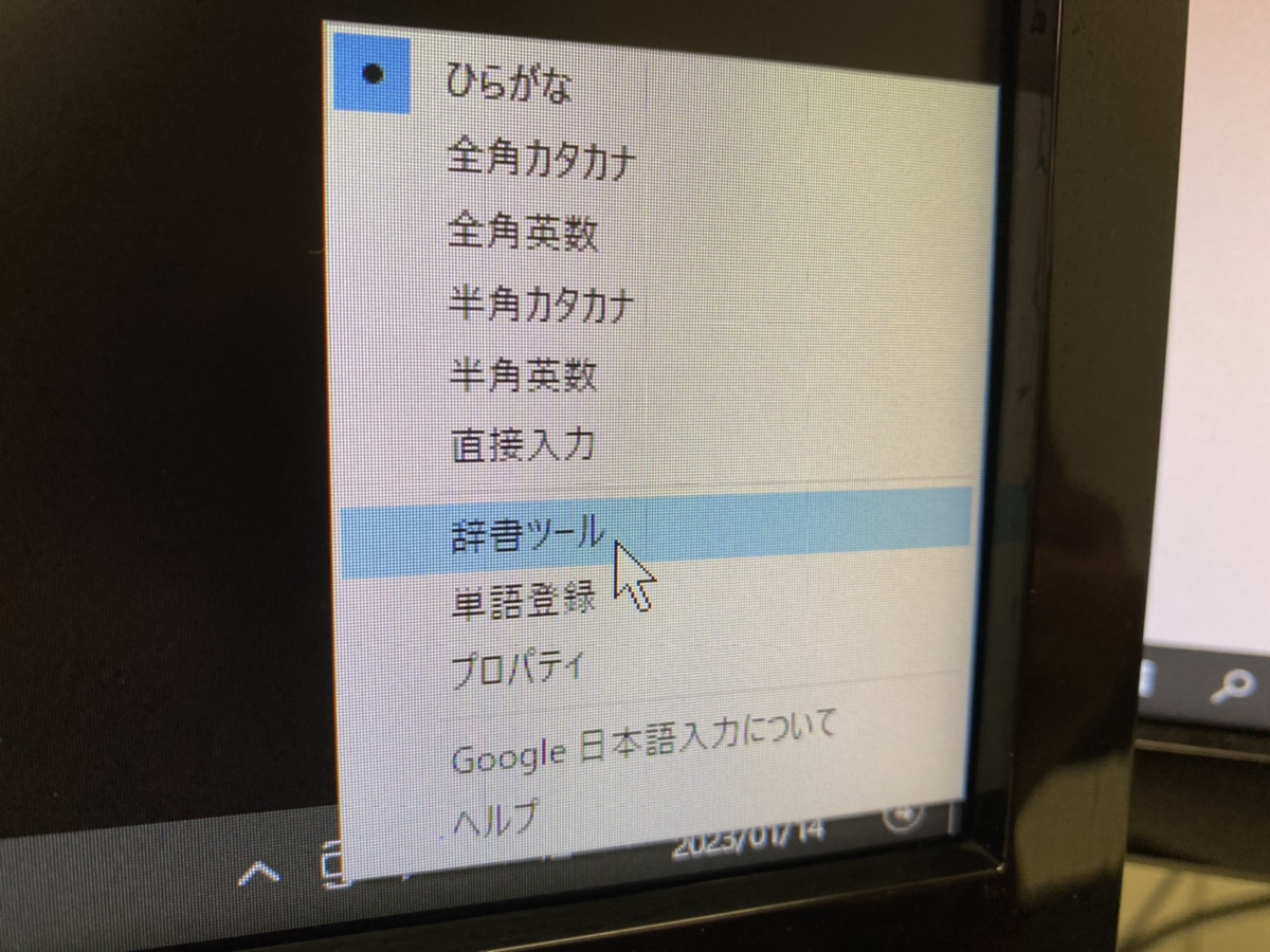 辞書ツールは、Windows画面右下のアルファベットやローマ字が表記してあるマークのところにあります。ここを右クリックすると辞書ツールという項目が出てくるので、そこをクリックすることで開きます。パソコンのスペックにもよると思いますが、ソフトが開くまで若干時間がかかる場合があります。気長に待ちましょう。